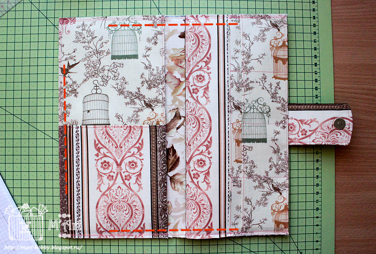 Сложите холдер пополам, как он должен выглядеть в готовом виде. Посмотрите - выступает ли у вас внутренняя часть. Если да, то срежьте выступающую часть, предварительно скрепив детали наметочной строчкой. Скорее всего вы затронете карман для паспорта, но это не сильно страшно. Он у нас достаточно широкий.